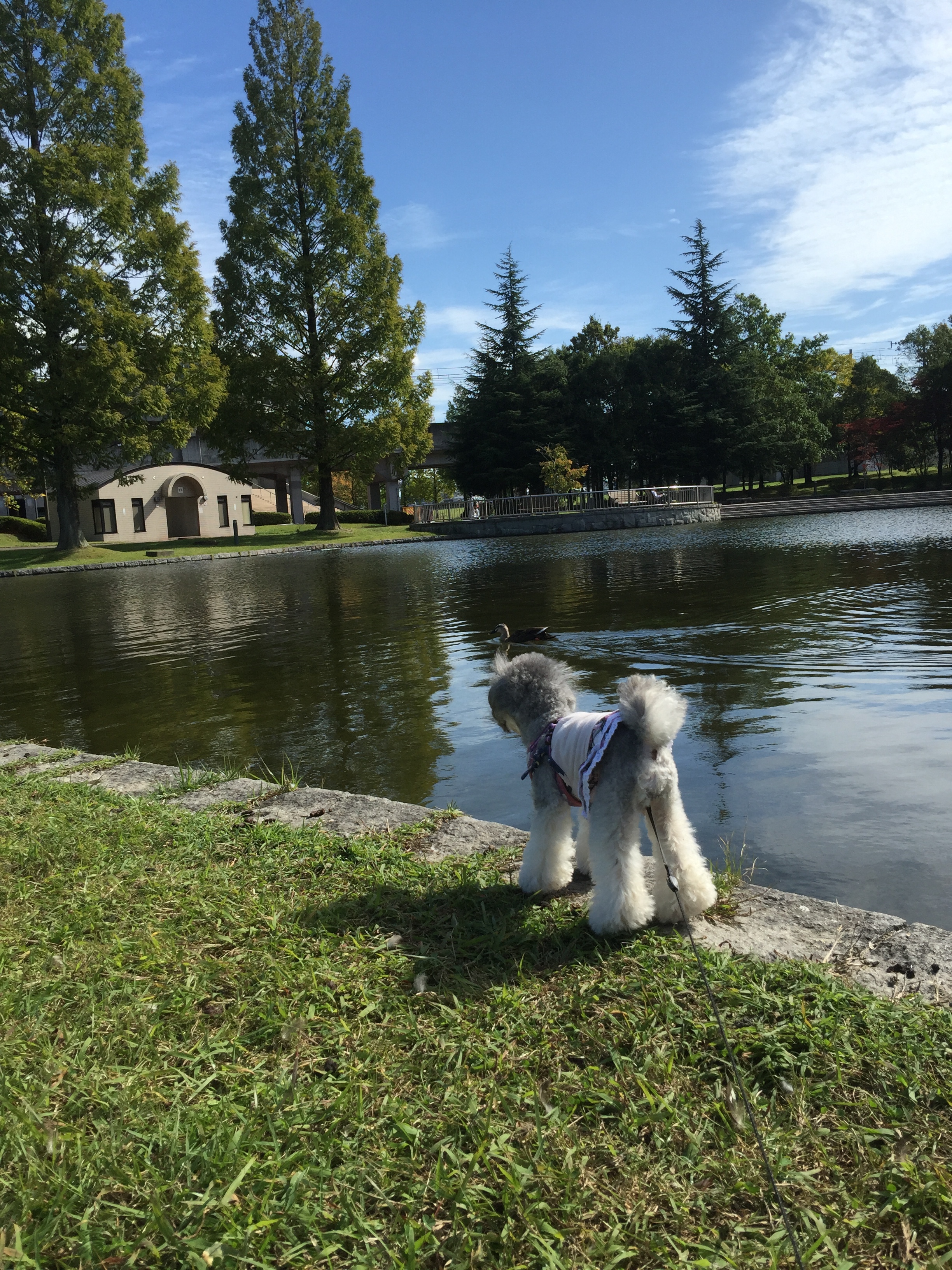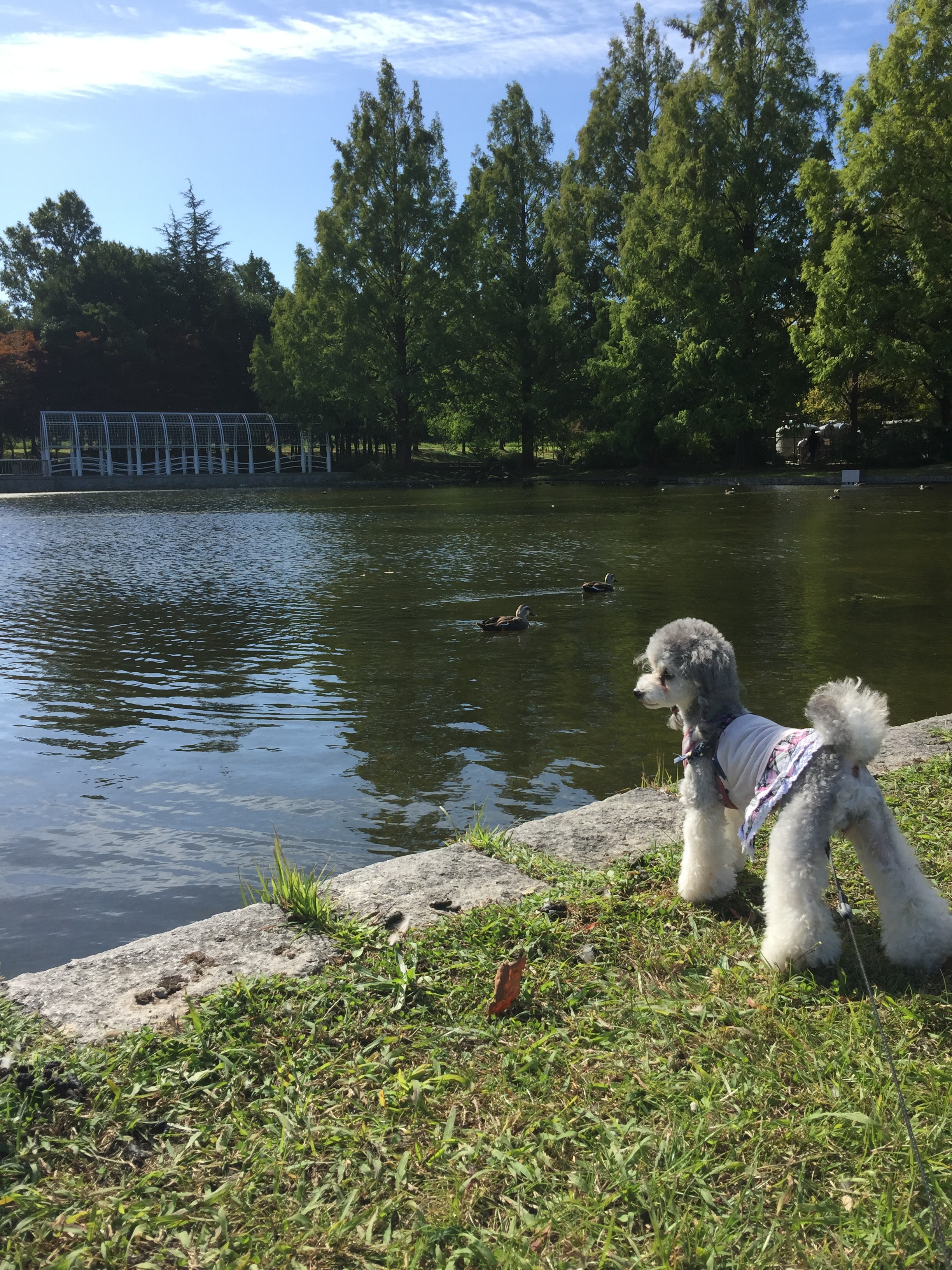 花壇は所々花の植え替え中ですが相変わらずキレイで、【ペットお断り】の看板がないことに感謝です