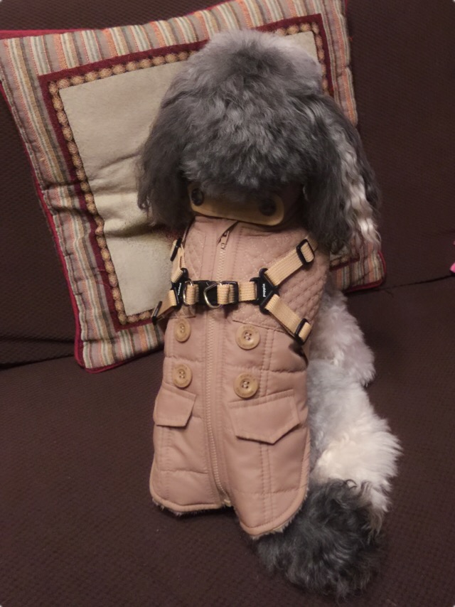 冬はコートを着せるとモコモコしてハーネスをつけるのが大変。。。