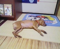あまりの暑さに愛犬リッティもバテバテとか?