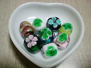 本当は緑のガラスでハートを作って組み立てたら、綺麗にそろった四つ葉のクローバーになるんでしょうね~、いつかはできるようになりたいなぁ~