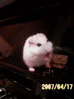 久しぶりの更新です。今日から心を入れ替えて更新していきたいと思います。ところで、みなさんに大事なお話があります。とても残念なことですが、2007年12月24日にハッチが天国へと旅立ちました。 つい、昨日のことです。昨日の夜、わたしは信者なので教会のミサに行こうとした時そういえばハッチ・・・全然動いてないなそう思い、カゴをのぞきました。しーんとしていていました。私が、床材をゆさぶるといつも出てくるはずのハッチはでてきませんでした。私は頭が真っ白になりました。この前、昨日と同じ事があり、心臓は動いていたのですが冷たく固まっていて、急いで心臓マッサージをし、無事に復活したばかりでした。それなのにまたっ・・・思いながら巣の中を探りました。指にふれたものは、冷たくかたまって目をつぶっているハッチの姿でした。私は「やめて!ハッチ、死なないでよ!」そう、小さくささやきまがら涙を流し、うずくまっていました。続きは明日。 コメントを下さる方は宜しくお願いします