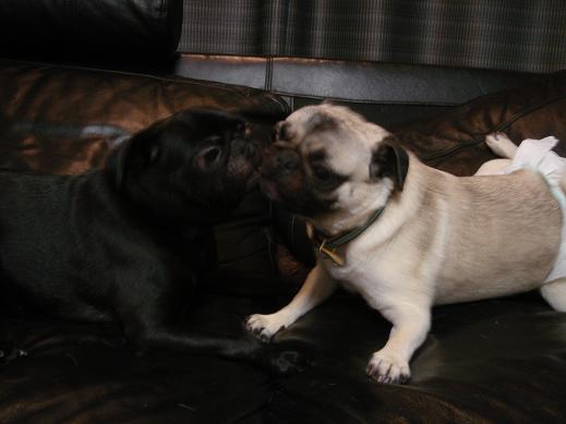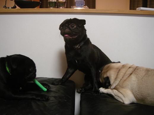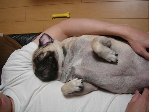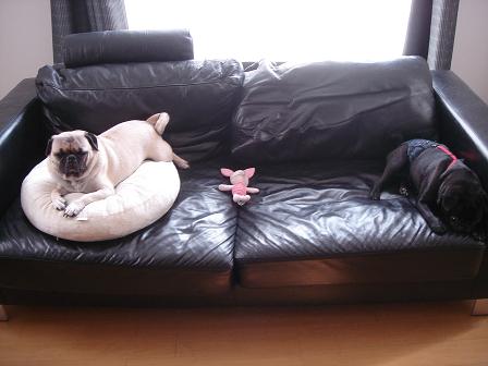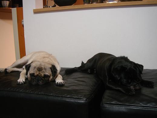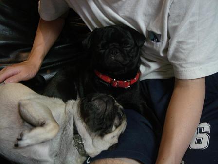 昨日の3パグでいた後、眠くなった いなほとす~ 偶然 撮れたんです 稲造&鈴 これ 絶対やらせじゃないですからっ 暑がり ほと はソファの下で寝てました