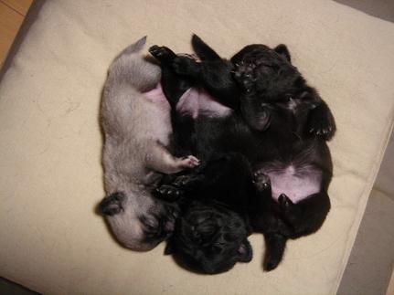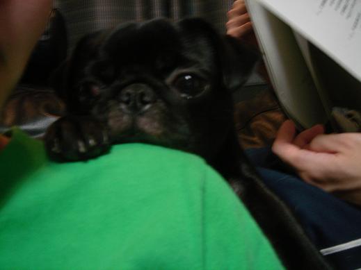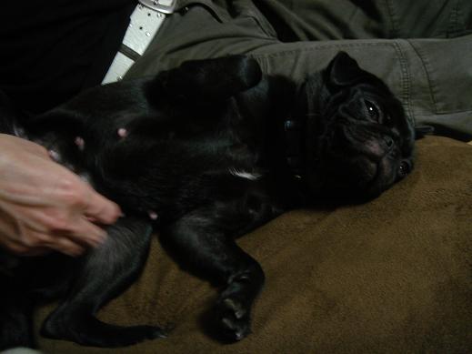 昨日、初めてあんこちゃんていうお友達と 会いました とっても小さくてかわいいあんちゃん (1才3ヶ月で3Kg!!はじめて出会った小さいパグちゃん) 会ってすぐはす~ちゃんの勢いに押されて ご主人様の膝から離れられなかったんです でも、小さくてもやっぱりパグちゃんです。 おやつをあげた途端。。。ご主人様の存在忘れてます(笑) おやつをきっかけに打ち解けてくれて、 2ショット撮れました 大きさの違いわかるかな?年は半年しか違わないのにね~ 最後にあんちゃんのアップです。 本当に小さくてフワフワでかわいい ティーカップパグちゃんでした また 遊ぼうね この時 アダルトチームの稲と蛍はテーブルの下で寝てました
