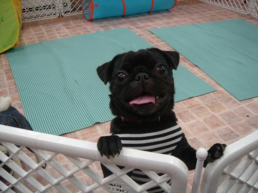 悟空ちゃんとお出かけしてきました 我が家は す~ちゃんだけを連れて行きました。 生まれた時から一人になったことのない す~ちゃんは カフェの中のサークルに入れられても 出たい出たいとアピール いなほと と一緒にいる時とは別犬のようです。 (本当はもっとおてんばなのにね~) 見かねた悟空ママさんが おやつをくれました 交互に食べて ようやく す~ちゃんも リラックスしてきたのか 他のワンちゃん達にも近づいていきました。 人にも 愛想を振りまくこと忘れてません 出た!!!パグ走り!!! 悟空ちゃんは楽しすぎて大興奮!!! とっても遊び上手なんですよ。 いなほとがいないと 心細くなって甘えん坊になるのかな?? たまには す~ちゃんだけと出かけるのも必要だなって 思いました。
