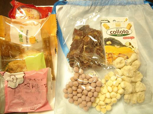 ころんのママさんからプレゼントが届きました 幸運にもころんのママさんのブログで20000HIT踏むことが できたんですよ~ ↑すごい数字です!私には 遠い数字だ~ こんなにたくさんいただきました 白いボーロがりんご味 紫ボーロが紅芋味 白くてまるいのがバナナのバキュームフライ 黒いのが砂肝 ココロンかぼちゃ味 左側一列がなんと人間用のお菓子 アーモンドマドレーヌ 山口いちごブッセ 夏みかんプーロ ごま味サブレ つぶつぶチーズブッセ どれもおいしそ~ 燻製砂肝あげてみました。 蛍 稲 鈴 みんな夢中であっという間に食べちゃいました まだまだおやつがいっぱいあるの知ってる稲くんは物色中 それに気付いたほとちゃんは私の足を踏み台にして物色中 足が短いからしょうがないでしょと言い訳する蛍美でした。 ころんのママさん本当にどうもありがとうございます!!!!!!! 次回は30000HITかな?ねらっていきますんでよろしくです