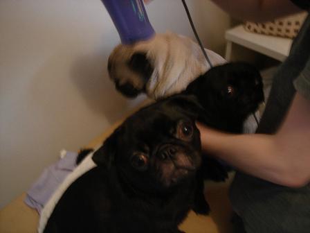 今日は久しぶりに いなほとす~のシャンプーでした。 めんどくさがりなんで、いなほとす~を 一度にまとめてシャンプーしちゃいます その後のドライもまとめてしちゃいます 交互にドライヤーをあててってます。 結局はかかる時間はまとめてしてもしなくても 一緒だとおもうんですけど、 まとめたほうが何となく楽な気がして。。。 それに みんな早く台の上に上りたがるんですよ ドライヤー好きなのかな??? まとめて乾かします♪
