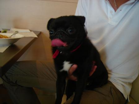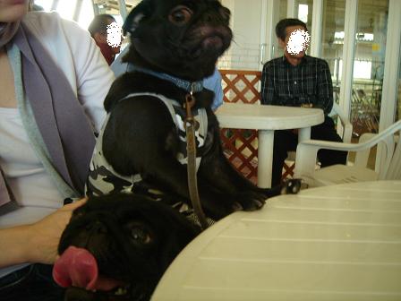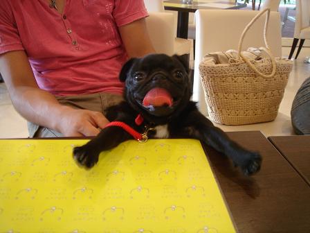 昨日はオフ会でした 今回は残念ながら、3家族、5パグちゃんでした。 (そのうちの3パグはうちの子なんですけどね) 昨日は30度以上あって暑くて暑くて、 ドッグカフェのとなりにドッグランがあるんですけど、 みんな喜ばず、はやくカフェの中にはいりたそうでした 暑いしおなかすいたし、ダルダルのあんこちゃんです。 そんなダルダルのあんこちゃん。 食べ物がでると人(パグ)が変わります!!! 店員さんの足元にピトっ。離れません それを見ていたさくらちゃん。 まけじと店員さんの前でいい子座りです ドッグランの時はママの陰に隠れてたし、 カフェでもテーブルの下に隠れるくらいシャイだったのに! さすがです!パグです!!! さて、今回はミートローフ頼みました。 なんとこの大きさで100円なんですよ 値段を知って、もちろん全員同じの頼みました ゴハンを一番待っていたのはあんこちゃん。 期待度200%のお顔がかわいい ところが、もう一人ゴハンを待ち望んでいた子が。。。 さくらちゃんです! しかも あんこちゃんのをねらってます!必死です そんな さくらちゃんにママさんは はずかしがっていましたが 楽しませていただきました 積極的なさくらちゃんもかわいかった と、ここまで書いてて我が家のいなほとす~が まったく登場してませんね 理由その1.暑さにバテテずっとテーブルの下でへばってたから。 その2.あんこちゃんとさくらちゃんに夢中になりすぎたから。 というわけなんです。いなほとす~ちゃんごめんね さすがにゴハンの時は動きをみせたので、 やっぱりほとちゃん ほとちゃんにあげようと思ったわけじゃないんですよ す~ちゃんにあげようと思ってたのに全然気付かないから ほとちゃんに取られちゃうんだよ~