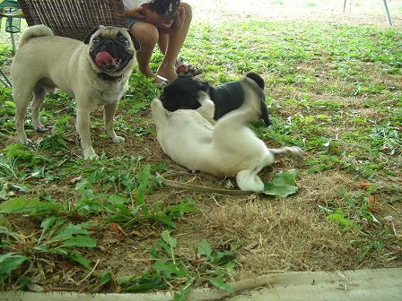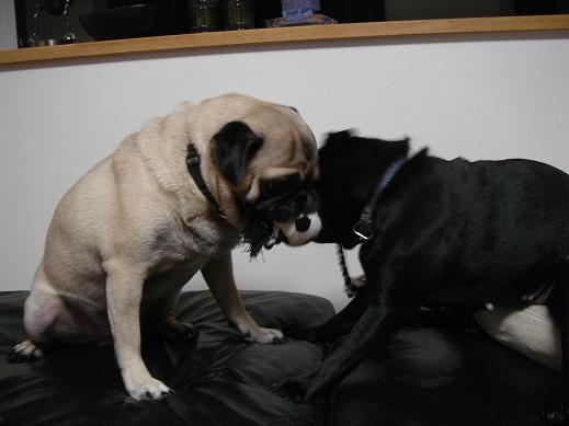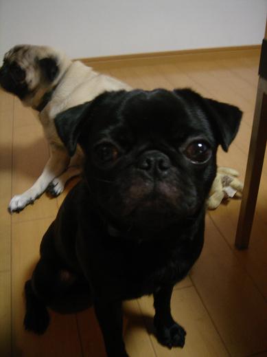 いつも奥ゆかしいほとちゃん (すみません親の欲目ですね) いな す~が遊んでても離れたところで 見守ってばかりなのに、 こんな激しい一面がありました! うどんをあげてみたんです ほっち~!!! やっぱりパグだね