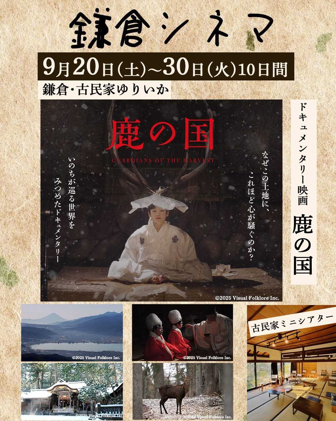 一方、鎌倉では諏訪大社を舞台にしたドキュメンタリー映画『鹿の国』が上映されます。