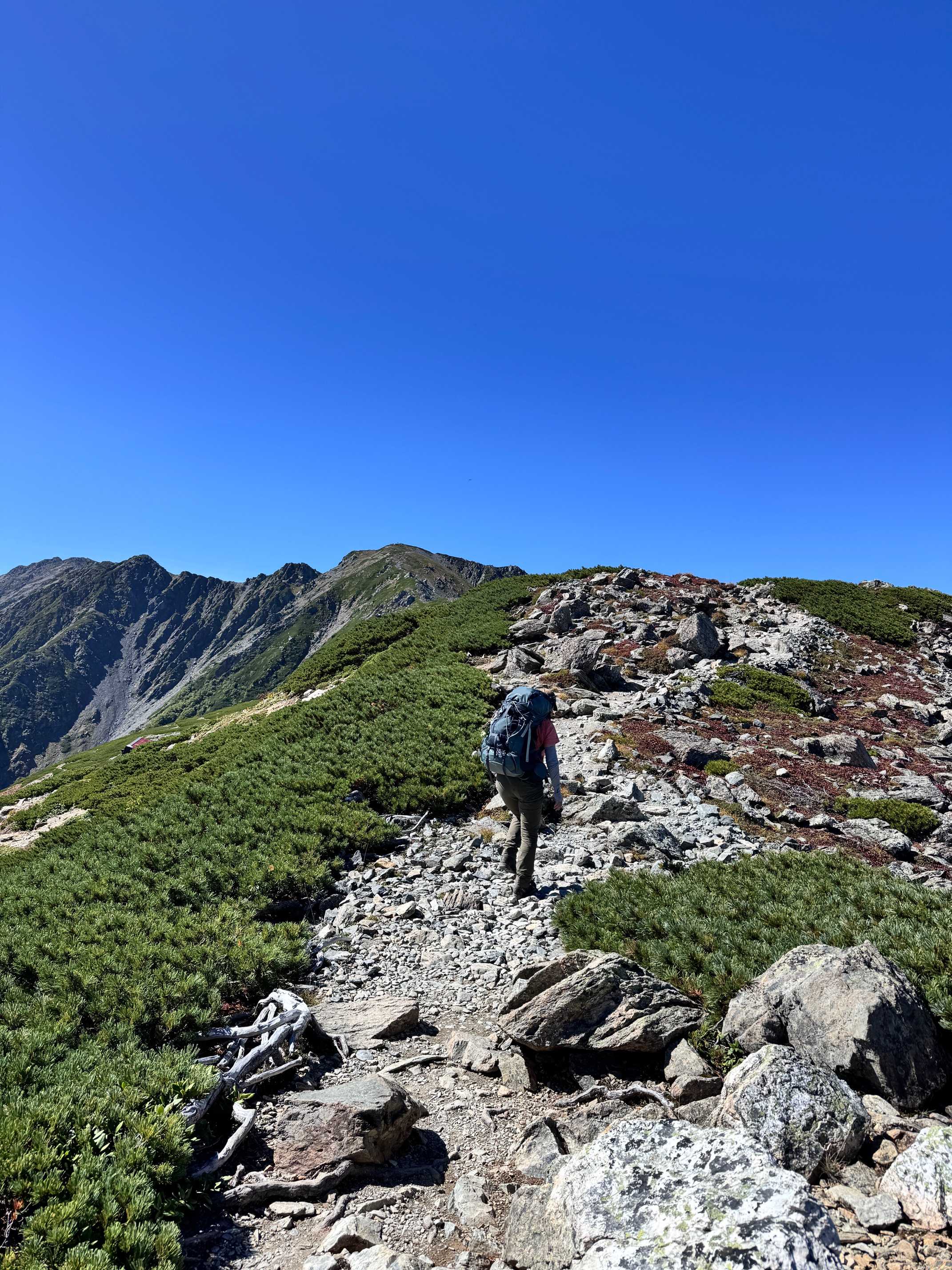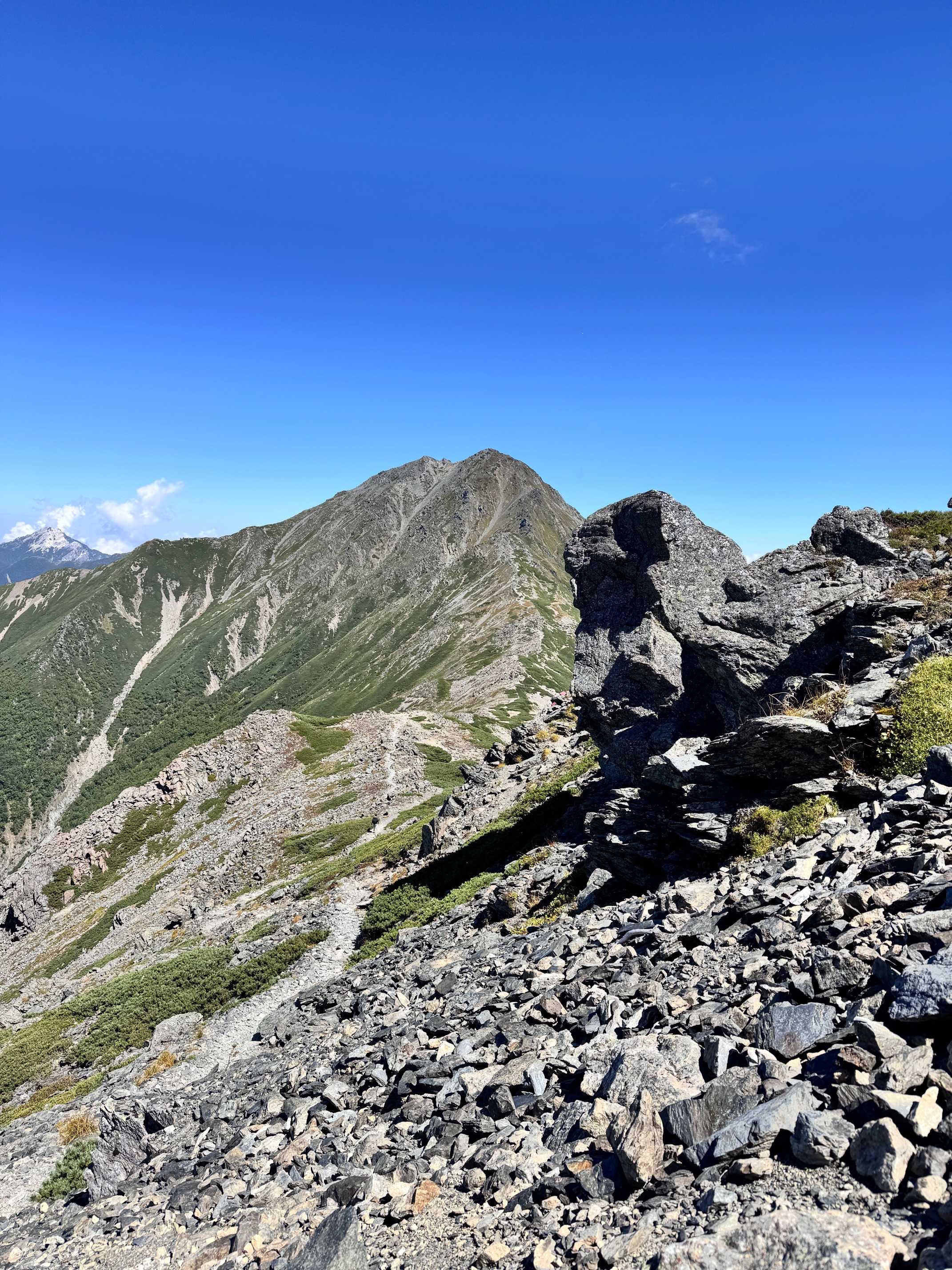 間ノ岳の山頂に登る姿を遠くから撮影⛰️
