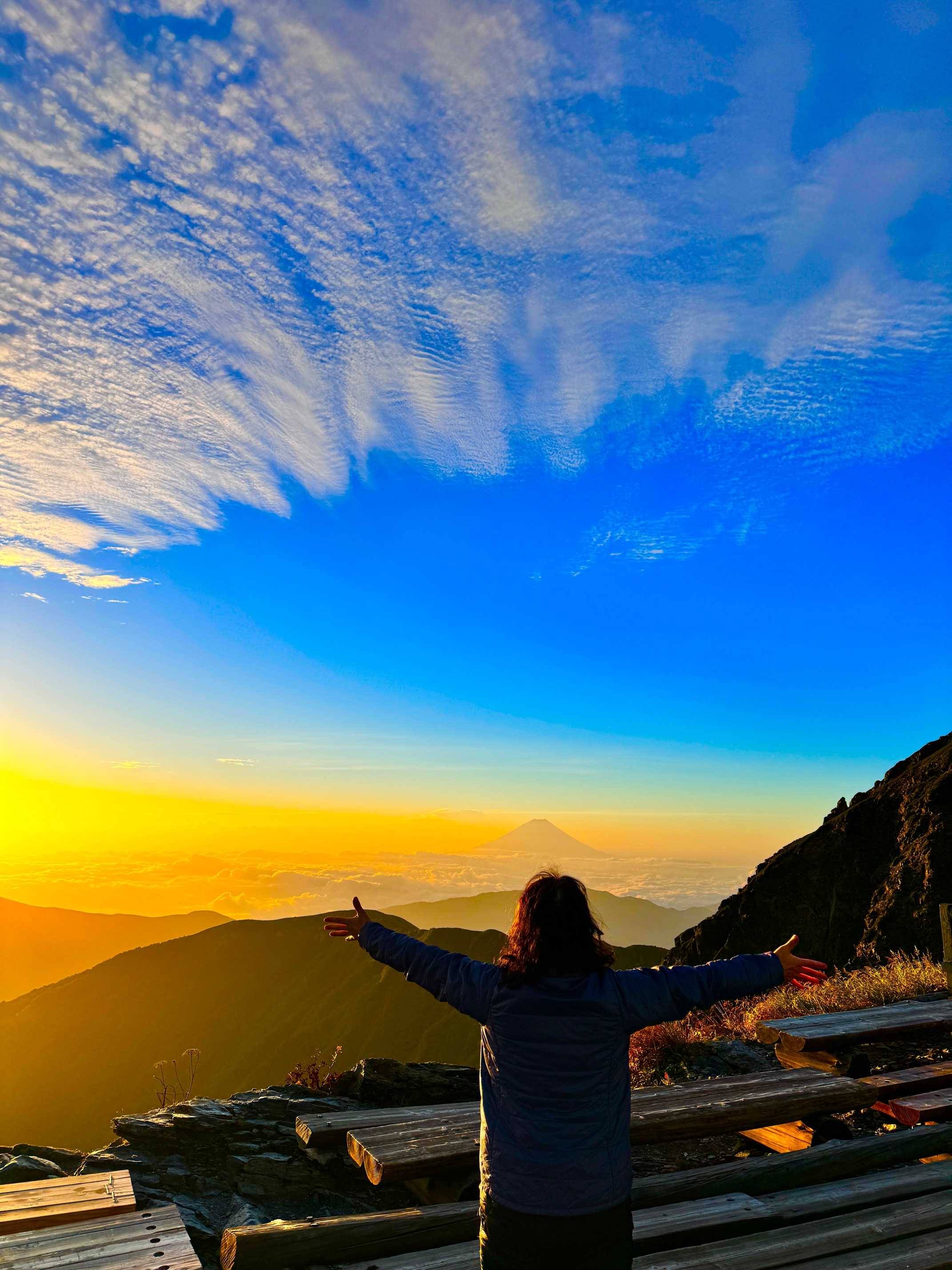 「富士山を二番目に高い北岳から眺めながら味わう」という最高の瞬間を共有しました。