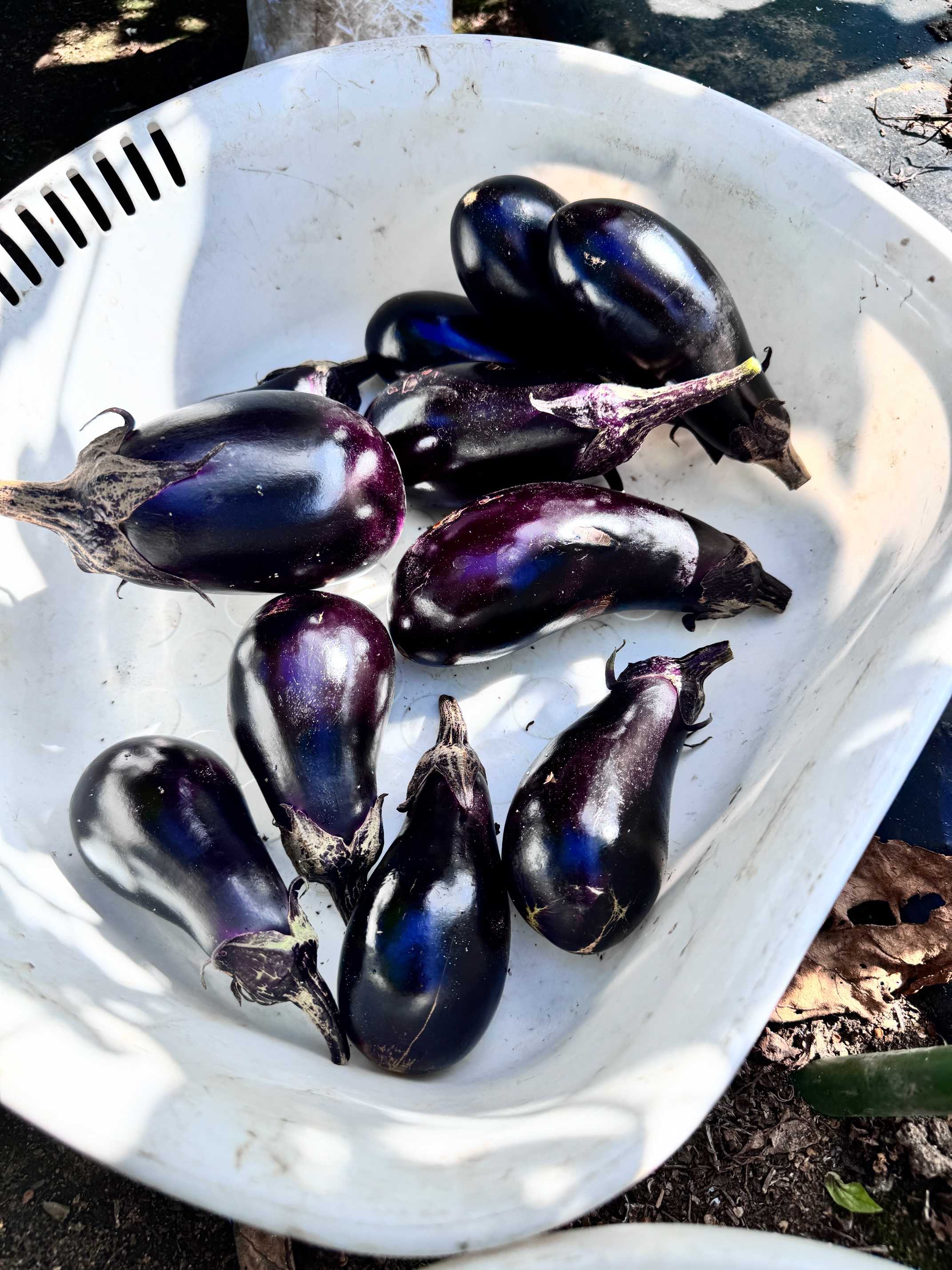 その場でもぎ取ったナスやバジル、と苗🌱も頂きました。