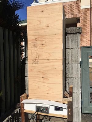 上図が、今回作成する宅配ボックスの外観/板組図です。横幅50cm(内寸47cm)奥行46cm高さ90cmを誇る?巨大な箱となった。これだけ大きいと、コンパネ1枚でなんとか・・・と言う訳にもいかない。180cmx90cmのコンパネを2枚使う事とした。この設計図は箱部分だけで、足は設計していない。この箱に高さ40cm~50cmぐらいの足を付ける予定だがSPF 2x4で適当に作るつもり。上記が板取図だ。12mmのコンパネ2枚を上記のように板取をします。黒い線はホームセンターでカットをお願いできるが、赤い線は自分でカットする事になります。一番面倒なカットは、裏板④のカットで丸鋸の刃を20度傾けて板厚方向に斜めカットします。この加工のために専用の丸鋸定規を別途制作しました。マルノコ定規の作り方はYoutubeなどを参考にしてください。1枚目のコンパネからは上記の板を切り出します。2枚目のコンパネからは上記の板を切り出します。これらを最初の図面のように組み立てるのだが・・・・・組み立てには先日ご紹介した、タイトボンドとスリムビスを利用します。スリムビスは30mm~35mmぐらいで大丈夫でしょう。スリムビスを打つ場所にはあらかじめ、下穴を空けて、面取りを使いネジの頭が隠れるようにします。穴位置はだいたいこんな感じです。ボール盤などでできるだけ垂直に空けましょう!箱の組み立てには、コーナークランプもあると、ずいぶん組み立てが楽です。自作物と言うのは、作る物の材料費よりも、作るための道具にコストがかかるので、結局高くつくことが多く、道具を購入したからとまた違う工作をするとまた道具が欲しくなり・・・堂々巡りですね。セキュリティ編運用編3運用編2材料一覧編運用編完成編組立編脚部設計編設計編構想編SK11 垂直ドリルガイド DS−70先割れ細ねじ(半ネジ) 3.3×30mm 24332 約190 本入モノタロウ 面取りカッター(穴開き型)10 1本岡崎精工 面取りカッターI型(穴開タイプ)STシャンクCS1S08-10 1本[4969968248380] KENOH アルミコーナークランプ【5400円以上送料無料】SK11 コーナークランプ SKC-4【 45%OFFクーポン 】配布中!高評価★4.55 顧客満足度98.7% 大容量60L超 宅配ボックス 【送料無料(沖縄除く)】★止水ファスナーで雨風に強い! アパート マンション用 一戸建て用 簡易固定 軽量 折り畳み可能 盗難防止ワイヤー 鍵つき 宅配BOX value03