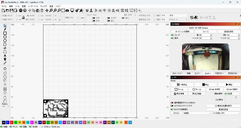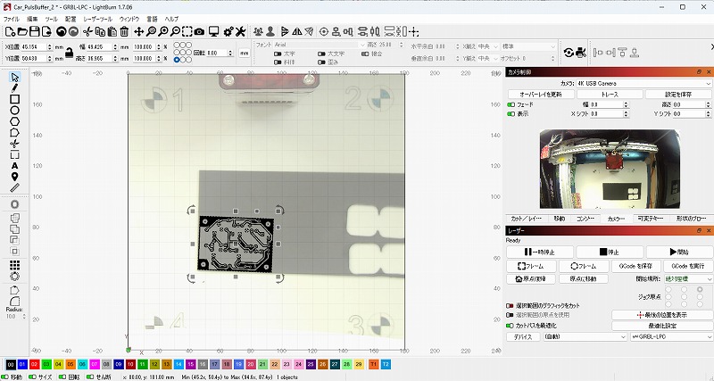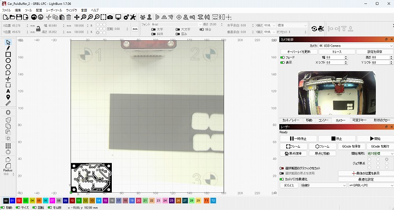 加工素材を加工領域内のテーブルに置き、「オーバーレイを更新」を押します。