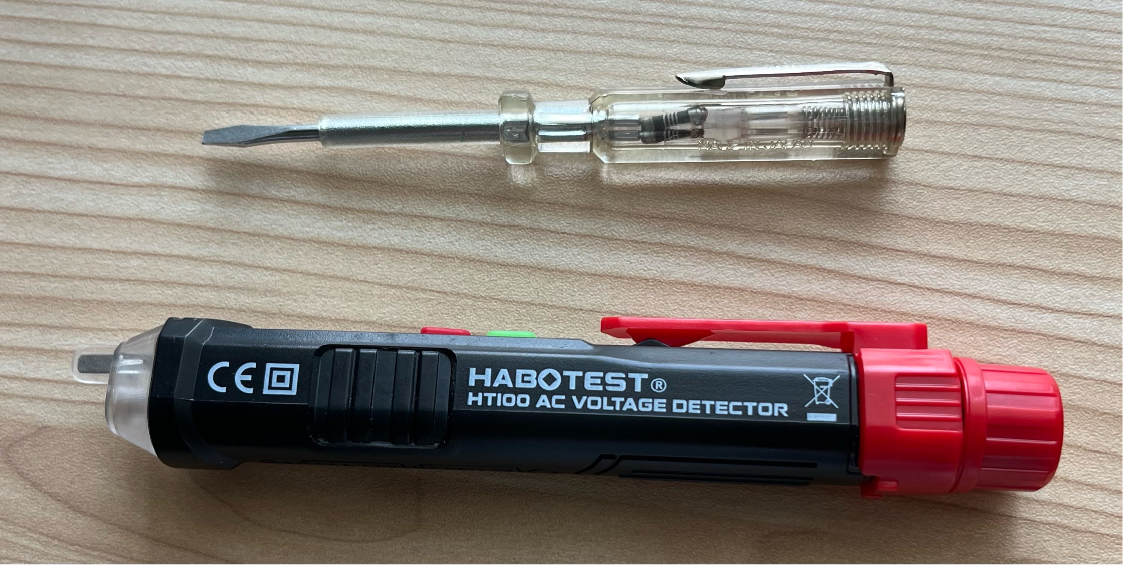 調べるためには検電ドライバーやAC VOLTAGE DETECTORが必要です。