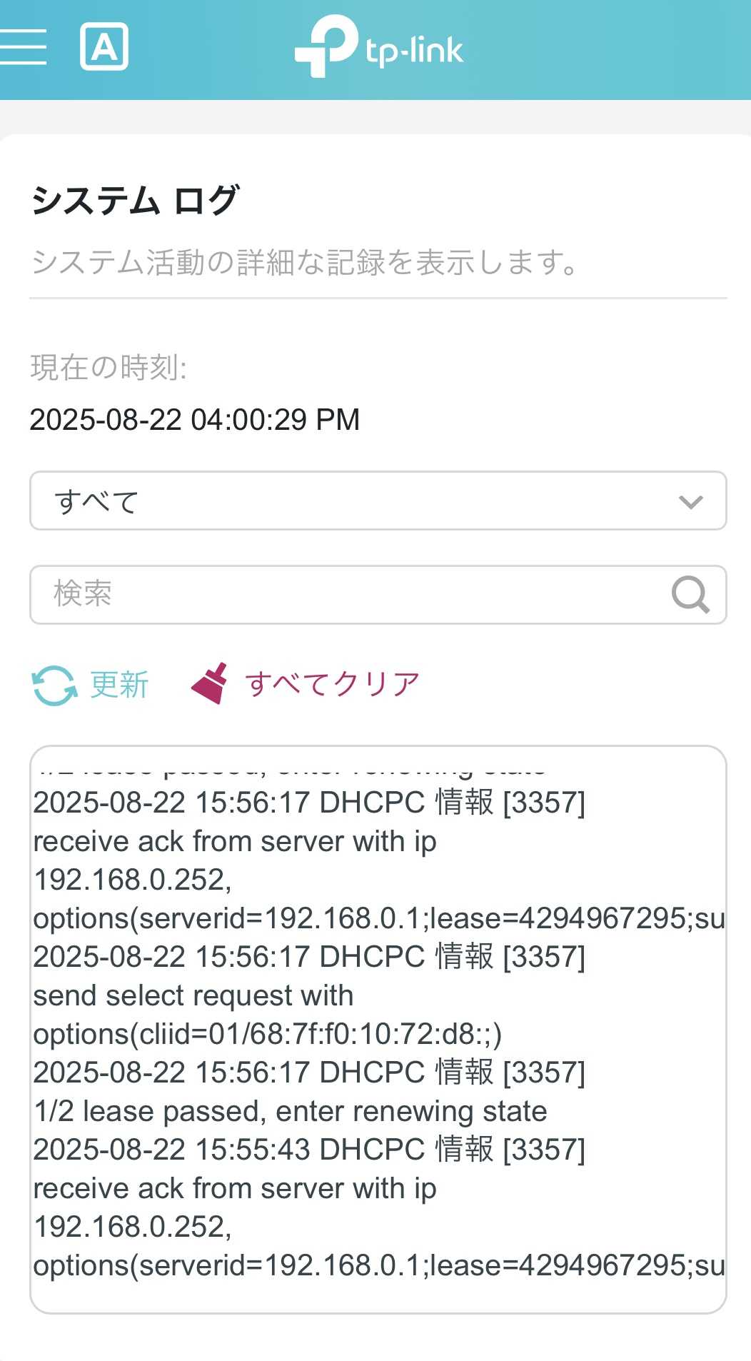 具体的には、IPアドレスをDHCPサーバーから取得するのだが、数秒から数十秒に一回、renewingが発生している。