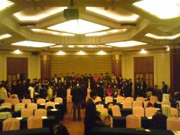 北京を皮切りに、上海、広州の研修ツアー?スタート。北京を中心に天津や大連から経営者が続々集まってきました。定員オーバーして、約120名の参加者。(ありがたいことにソールドアウト!)一泊二日の宿泊研修です。メンバー間で「ツアー」と称するにはワケがあって、北京と行っても、わざわざ飛行機に乗ってかなり広域から集まるし、何より宿泊を含めて、その準備に携わる人数が多いからです。それらの人々と、ずーっと一緒に各地を巡業?することになります。僕らが驚くのは、その「準備力」で、サービスの80%は準備で決まる、と言われる中、素晴らしいチームワークでやり遂げます。(それができるスタッフや業者が増えたということ)やはり、随所にオリンピック効果が蓄積されたと言えるでしょう。オリンピック効果って、経済面ばかり取り上げられるけど、こうしたソフトも重要です。受講者の皆さんも、中国経済未知の領域に突入しているせいか、勉強熱心です。日本のサービスとその管理の手法を学んでヒントにしよう、、、という方々の姿勢には迫力があります。だけど、このホテルなどは、すでに十分に日本のサービスを抜いているから、(ハウスキーパーからベルボーイまで)本当は、部分的にはもう一気に追いつかれていたりするから、調子に乗ってはいられない、かなぁ。