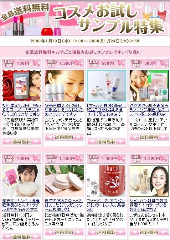 【楽天市場】人気のサンプル特集♪人気のサンプル品が激安、爆安、超特価お値打ち品をリーズナブルなプライスで大放出!期間限定!トライアルセットサンプル特集♪潤いぷるぷる肌、つやつや美髪に!試してみたかった商品がお手頃サイズ&価格だから、気軽にチャレンジできます。↓ ↓ ↓★詳細はこちらから 専用ページへ(全 752件)★★ 業界最大級130万人のモニターを持つ楽天リサーチ ★★アンケート回答するたびにポイントが貯まります★無料モニター登録は↓こちらから★ ヴィッセル神戸勝利でポイント2倍! エントリーフォームへ ★★★★★★★★★★ 楽天ランキング市場 ★★アフィリエイト部門最高2位★☆お小遣い稼ぎ部門最高1位☆☆プログラム部門最高1位☆WEB貯金箱| アフィリエイト入門編 | 被リンク数を調べる | 検索エンジン一括登録 | 【HERMES】エルメス バーキン | ブログ系アフィリエイト | アンケートリサーチ(1) | アフィリで稼げない9つの理由 | アフィリエイト専門店TOP | 株初心者 株式投資で増やす | 運気アップ講座TOP | 脳トレーニング講座TOP | 資生堂コレクション | 【NIKE】ナイキ オンライン | アンケートリサーチ(2) | ナチュラル ライフ | 商品が売れる法則 | 楽天広場アフィリエイト講座 | 人気の福袋(新作福袋情報) | 介護支援福祉情報 | ダイエット専門店 | ★もれなく全員にプレゼント★ | Google AdSenseで月10万!徹底解説 | 楽天広場HTML講座TOP* 楽天市場TOP *