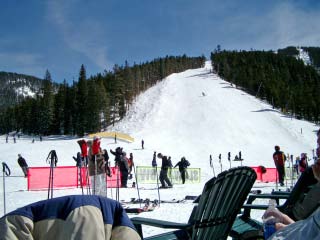 先週末は長男くんのバスケットボールシーズンの最後の週、 トーナメントだったんだけどいきなり負けちゃって 急きょ予定変更で2泊3日でまたまた 家族でスキー・スノーボードをしに行ってきた 金曜日は、ここデンバーも朝から吹雪だったんだけど うちの野郎ども3人組はそんなことかまっちゃいない 朝6時半におきて、支度を始め またもや 山へと出かけた (うちの旦那は、スキーパスも元を取ろうと必死なのだ... もう十分元はとったと思うんだけどなあ... でもあの方...けち...だから...) この日は、山についた後も 強い風と雪で寒いになんのって... それでも、野郎どもは気にしてないみたい 午前中は、またまたバニースロープでウォームアップ 午後からは、4人乗りリフトに乗って山の頂上へ それでも、4時半ぐらいまでがんがんに すべりまくって、車に戻ってきた頃には もう寒さも限界....もう寒いのなんのって... 早速ホテルへと車を走らせチェックイン... そしてまずは、水着に着替えてジャクジーへと.. 寒さで冷え切った体を暖め、次の日のために 早めに就寝... そして、次の日、土曜日と日曜日は.. みてください...これ 見事なまでの かんかん照り 朝の9時から3時半までがんがんに滑りまくり... というのはいいんですが、 はっきり言って、子供の体力にはついていけない...とほほほ... 今回で、6-7回目のスノーボードの次男坊.. この3日間ですごい上達です そして、このぐらいの子はぜんぜん恐怖というのものがない様で グリーンスロープ(一番簡単なスロープ)とブルースロープ(その次)を 混ぜて滑ったのに、 彼は何も躊躇することなくがんがん飛ばしていく 私でさえ、前の見えない、かなり急なスロープの前では 躊躇してしまうのに彼はそれがない いくら、急だろが関係ないみたい 今回は、先頭は旦那....旦那がどのスロープからどこへ行くか みんなを誘導する係り それについて次男坊が滑っていき その横に長男くんがつき そして私がその後ろをついていくという体系で行った そして、次男坊が転ぶと起こしてやるのは私の役目... 何が一番きついって... スノーボードで、平らなスロープで動けなくなったとき、 スキーだったら、ポールを使って前に進めるんだけど スノーボードはジャンプを繰り返して前に進むしかない... そこで私の出番 次男坊のうち後ろからちょっと勢いをつけて 私の両足のスキーの間にはさんで抱え込み バランスをとらせ、私につかまらせて 私はスキーのポールで前に進むという 結構、体力的にきつい作業を一日のうちに 何回もしなければいけなかった 肩と、腕の筋肉...ぱんぱん... そして、ブルースロープの急斜面を 子供たちの後について降りていくのだけど そのせいで、ももの筋肉.....ぱんぱん... これは、ちょっとおばさんにはきついよ~~~ そして、土曜日、日曜日のかんかん照りの お天気のため、サンスクリーンをぬったのにもかかわらず 顔中まっかっか... うちの旦那の顔 ...まるで赤鬼みたい... だけど、久しぶりのファミリーバケーション(と呼んでといいのか知らん??) 子供たちは存分にスノーボードのを楽しんだみたいだし まあ、私も体中痛いけど 3日間、エクササイズしに行ったと思えば..まあいいっか... でも、今日もかなり...痛いです... うちの長男くんと次男坊のスノーボードスタイル...