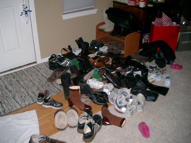 本当は今年はやめようかと思ったんだけど(面倒くさいから..今年は怠け者の私...) 旦那の強い要望により今年もうちでクリスマスパーティーをしたの もとはといえば去年働いていたときには毎年会社のクリスマスクパーティーがありそしてこのギフトエクスチェンジ&ポトラック(食べ物をみんなで持ち寄るパーティー)があったんだけど こちらに引っ越してきてからそれがないのが寂しくてそれじゃあうちでやろうってことになって去年からはじめたこのパーティー 今年も私たちのお友達とご近所さんを招待して先週末にパーティーをしたんだけど (よべなかったお友達...ごめんなさいね) 集まったのは実に50人以上大人も子供ももうめちゃくちゃ.. うちの家はパンク状態 特にキッチンは人も歩けない状態 うちの母が ”人っておなかがすいているとキッチンに集まってくるのよね”ってよく言うんだけれど 本当にその通り その日のうちのキッチンは人の山でしだ だって、食べ物はみんなキッチンにあるから... はははは... そして...これ.. すっごい数の靴...靴...靴... 55x1ペアー=110 110個以上の靴が散乱.... それでもみんなで楽しくギフトエクスチェンジをし... のんで食べておしゃべりしてみんなで楽しい時間をすごせました そして何人かのお友達は我が家のコービー君に会いに来てくれたのですが こんなだったコービー君 7ヶ月のうちにこんなになっちゃって... びっくりした方も多かったみたい そんなわけで本番クリスマスは2日後ですが私はもうクリスマスが終わったあとのような気分 でも、子供たちは毎日指折りクリスマスが来るのを待っているのでもうちょっとだけクリスマス気分でがんばらなくちゃ. 来てくださった皆さんありがとう そしてよいクリスマスをね デンバーは情報によるとホワイトクリスマスになりそうです
