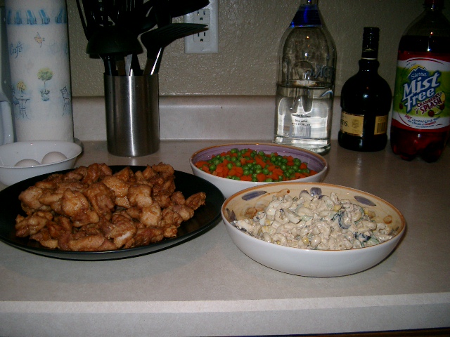 そして...最後の4日間 日曜日 (1月11日) この日も次男坊、熱が下がらずでも、前の日に比べたらちょっとは楽になったみたい そして、夜4時半と6時半から長男君のバスケットボールの試合があったんだけど私は、次男坊と留守番することして その代わり、試合の前と試合の後にするっと食べれるようにこの日は この一週間の野菜の残りにこのまえ買ったセロリとか、コーンの缶詰め、それにビーンズなどを入れて野菜スープを作り それにこの前買ったWHEAT Breadを使って冷凍庫に残っていた薄切り牛肉とたまねぎ、チーズを使ってPhilly Cheese サンドウィッチをつくってみました 旦那と長男君は行く前にスープで腹ごしらえをして帰ってきてから、またスープとサンドウィッチでさらっとディナー 私と次男坊は彼らが行っている間にこれにプラスして次男坊のリクエストにより納豆ご飯が追加されました 月曜日(1月12日) 昼間にWalmartへ行ってちょっとお買い物 私の主食...バナナを少し $1.67そしてチーズを一袋 $2.22それと、たまねぎを2つほど $0.72 合計で $4.67 (残り$1.34) 夕食は 旦那と子供たちのリクエストによりこの前ターゲットで買ったチーズピッザとペパロニピッザを暖めて それに、前の夜の残りのベジタブルスープに缶とフレッシュ果物をミックスしたフルーツサラダ なんともお粗末な夕食で.... 火曜日(1月13日) この日も、長男も次男坊も両方バスケットボールの練習が違う時間にあるので 夕食は新しいレシピに挑戦 Tex Mex Spagetti... ひき肉とたまねぎをいためてそれをクロークポットに入れて それにサルサ、缶のトマト、コーンの缶詰め、スライスしたオリーブ、スパゲッティーとチーズを入れて少しおいておくと メキシカン風のスパゲッティーの出来上がり それも、2-3時間はクロークポットを保温にしておくと暖かいまま食べれるし、材料の結構安い物ばかり それに、レタスとかトマトのサラダとコーンブレッドをつけました これ新しいレシピだったのですが結構、家族には評判よかったですな.. そして昨日の最終日 水曜日(1月14日) 夕食は これ 前の3日間家族全員でご飯を食べれなかったので写真を撮るのを忘れてしまいましたがこの日はきちんととれました 鳥のから揚げと、マカロニサラダそれに、ピースにんじんのゆでたもの それに歯の治療中の旦那のためにちょっとサイドにパスタをつけました(ここには載ってませんが....) ということで.... チャレンジ終了 財布の中には $1.31残ってました 11日間を家族4人、35ドルですごす.... MISSION COMPLETED そして今日はめでたく旦那から今月分のお手当てをもらい さっそく食料を行ってきました そしてめでたくチャレンジが終わったわけですが... こんなに食料がもつということは私普段、買いすぎなのでしょうか?? 友達のコメントに "毎月やったら?” なんてありましたが、これを機会に、毎月チャレンジしても面白いかな??っても思ってます それに、結構冷蔵庫、冷凍庫の中のものも整理できたし 食べ物を入れてあるキャビネットも結構きれいに整理できました うちの旦那は火曜日の日に ”明日でなんとかチャレンジ....終わるんだろう??? 木曜日、外へ食べに行こうよ...” だって ”外へ食べに行こうって何が食べたいの?”って聞いたら ”McDonald" と...言われてしまいました やっぱりアメリカ人の旦那は片時もマクドナルドと 離れられないのかしら??? ちょっと悲しい現実かも知れない ははは~~ ということで 応援ありがとうございました (誰も応援してないって???...苦笑...)
