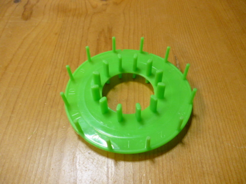 FLYING TIGERで見かけて 買ってみました よく解からないのですが、100円なので買っちゃいました 毛糸などで 丸いモチーフをつくるのかな? でも作り方も説明書も 何もありません 色々 試してみましたが??? 上手くいきません 子供の頃に遊んだ手芸道具を思い出して 中心に針を立てればよいかも? けしごむはんこ用のゴムを利用します(以前100円Shopで購入) 早速 試します 何とか使えそうです 色々 作ってみました。 結構かわいいのが出来ました 猫生地で ポシェット 17×15×5Cmです 反対側は 一緒にプレゼントしてもらった生地です 同じデザイナーさんの物です。 ポケットになっています