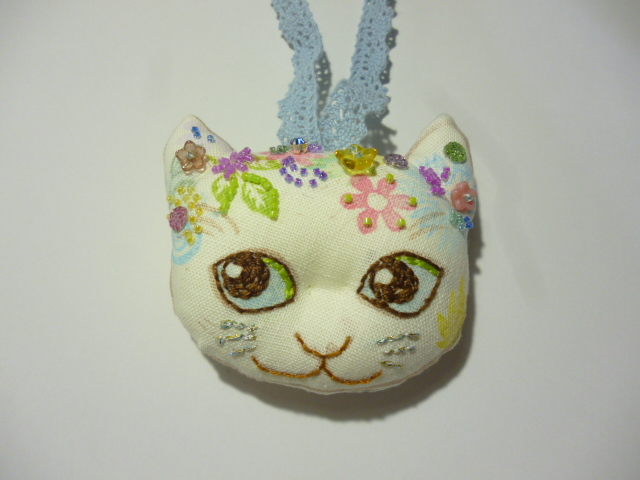 使いかけの ゴムがあったので、何か簡単な物を彫りましょう以前100円Shopで買った物で、失敗しても大丈夫?な品です下手な絵を描いて、(細かい部分は一切無い)彫りました 木綿の生地にプリントします 手持ちの、はんこを押しました 目や口は 刺繍して、キラキラビーズなどで ちょっとオシャレにしました アップにすると・・・・ちょい怖い?