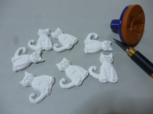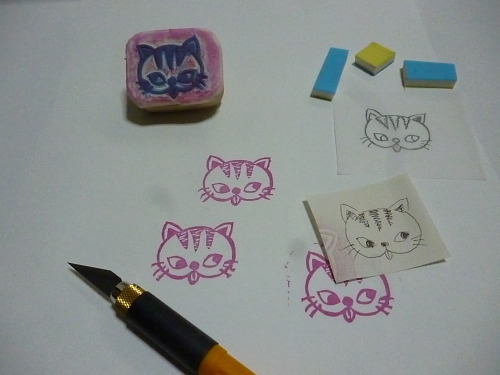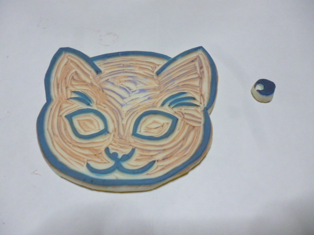 中途半端に残った はんこ用の消しゴム。 久し振りに ホリホリしました 細かい作業は 目が・・・・疲れます(焦点が合ってない?) 先日 食べた蒲鉾の板をカットして 張付けました クルミたっぷりの スコーンを焼きました 出来たばかりの ねこちゃんハンコも 押してみました 前回の続き ホワイトチョコレートでも 作ってみましたよ