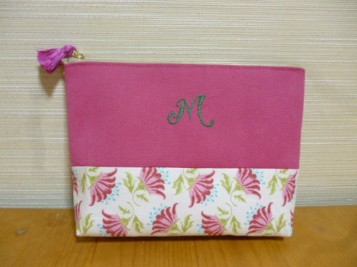 なんとなく ジメジメの梅雨空です 出掛けるのも気がすすまず(根っからの無精者です) こんな日は お裁縫しましょう サテンステッチでイニシャルを刺繍してみました 20Cmファスナー使用 刺繍糸で 小さいタッセルを作りました う~ん・・・・かわいい! ついでに あと2つ 作りました お裁縫は たのし~い 我が家のプランターで ミニトマトが たわわ(?)に育っています かわいい~!