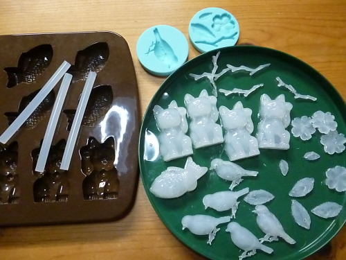 以前 何か作ろうと思って購入した 石粉粘土。 特に作りたい物が無いままに・・・・・仕舞い込み。 思いだして 触ってみたら あら大変 少し硬くなってる 急いで何か作りましょう セラミック製の押し型(たぶん 製菓用)を使ってみました 油性ペンで色着けしました こんなに沢山出来ました 仕上げにグロッシーを塗って、光沢と強度を出します 裏にブローチ用の金具を付けて 出来上がりです 大きさは4Cm位です