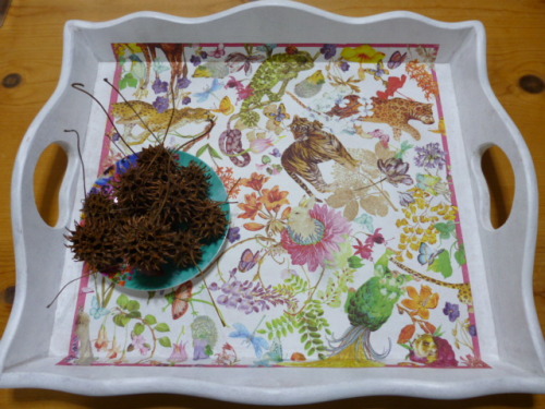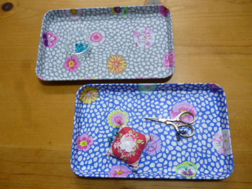 麻の布で、鍋つかみを作りました 手袋タイプのは有るのですが、雑誌で可愛いのを見つけ 作ってみました 反対側 同じのを2つ作って、皮の紐でつなぎました 掛けておくだけで ステキです デコパージュ 前回は 紙(ペーパーナプキン)を使いましたが LIBERTYのタナローン(凄く薄い生地)で試作しました 紙より貼りやすかったです 次は 普通の厚さ、Kaffe Fassettsで 自分の好きな生地でトレーを作れるのが楽しいです 100円Shopのトレーが、大変身です