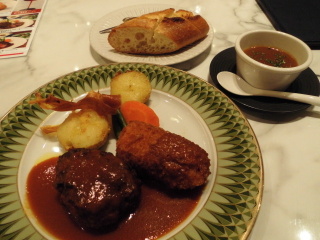 今日はCAFE AUX BACCHANALES(カフェ オーバカナル)でハンバーグじゃけぇ!煮込みハンバーグと牛肉の赤ワインソース煮込みハンバーグがおいしい彩キレイ煮込みハンバーグ人参サラダサラダおいしいですお野菜もたっぷりミナモアパンパンにもあいますゆっくりできます!おいしかったです 広島ブログ じゃけぇ!ディナーじゃん! ランチじゃけぇ!