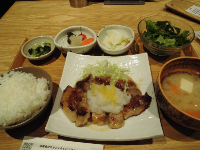 今日はみのる食堂でのディナーじゃん!広島県産お米ポークのソテー定食柚子味噌おろしポークソテーごはん味噌汁サラダ小鉢煮物漬物いろいろ食べれます柚子味噌おろし味お肉はジューシーでボリュームありますほっこり~おいしかったです 広島ブログ じゃけぇ!ディナーじゃん! ランチじゃけぇ!