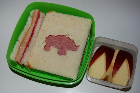 またまたお弁当日記なんです。最近チョコチョコとやってた事があってそのおかげで日記の更新が滞りがち。何をしていたかは後に書きますね。フルーティー弁当その2前に作ったフルーティー弁当はバナナとイチゴだったんですけど今度はオレンジにしてみました。って、ホントはレモンのつもりで作ったんだけど息子がオレンジだって言うもんだから・・・まーそれでもいいかと。イチゴは私のお気に入りのネタなので変えられません!おじさん弁当これはバックのプリングルスが無かったら全然何だか分からないだろう!学校のお友達も全然分からなかったそうです・・・。プリングルスおじさんと見比べればそっくりなんだけどなあ。FUNサンドハイ、お察しの通り寝坊しました。それでこんなお弁当です。おかずに入ってる指みたい(怖)なのはブラッツのソーセージです・・・。クッキー型をいくつか持っておくとこういう時に便利。***お知らせ***私のお弁当をアメリカのお母さん達にも見て貰いたいなーと思いMySpace始めました。英語が全くダメな私なので悪戦苦闘しております。ココです→http://www.myspace.com/kidslunchboxとは言ってもプロフィールなんかはここやMixiに載せているし、目新しい事はほとんど無いと思われるので「ヒマでヒマでしょーがない!!」ってな時にでも覗いてみて下さいね。・・・いや、やっぱ恥ずかしいので覗かなくてもいいです。てな事言いつつマイスペブログのアドレスはこれです。http://blog.myspace.com/kidslunchboxお弁当のみのブログです。ここの日記に載せた古いものから少しずつUPしてます。以上が最近日記の更新サボリ気味な理由でした。