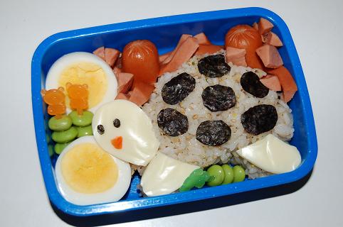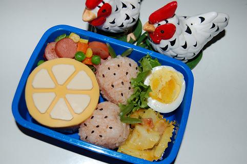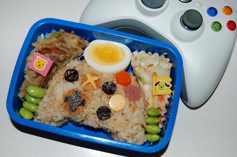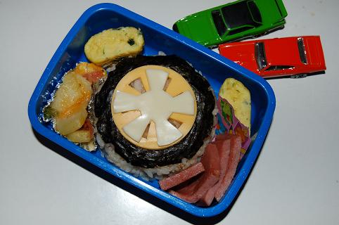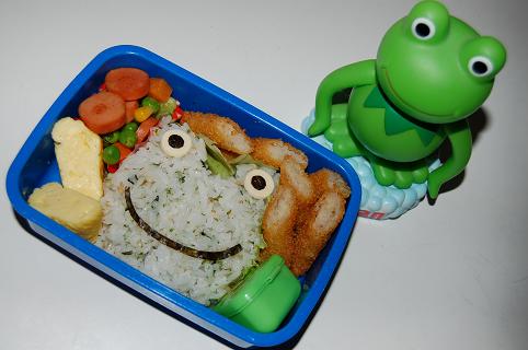 最近お弁当の日記ばっかりです。まあいきましょう。ケロタン弁当ケロタンなんて思いっきり日本のキャラ、しかもあまりにもさりげなさ過ぎて息子も「・・・・FROG?」てな感じでした。まーそうなる事は承知の上で、お友達には『カエル』って事でいいかなーと思って作ったんですけど。WUBBZY弁当これはNICK Jr.で新しく始まった『WOW!WOW!WUBBZY』というアニメのキャラなんですけど、どちらかというと幼児向け番組なのでお友達には「これはBABYのキャラだ。」と言われてしまったらしい。「でもぼくはいいの。だってママ上手だから。」と親にまで気を使ってくれる優しい息子。泣ける!ヨーダ・ベイダー弁当最近兄弟で『XBOX』にハマッていて、よく『LEGO STAR WARS』をやっているので思い切って大胆に海苔を使ってみました。息子は喜んでたけどお友達の反応はどうだったんだろ・・・?ヨーダが若々しくてちょっと怖い。2番目のWUBBZYの1件があってから、もう小さい子番組のキャラは使えないと分かったので今まで以上にキャラ探しが難しくなってしまいました。食材では色に限りがあるので青とかグレーとかどうしても出せない色もいっぱいあるし。かといって食紅とか使うのもいやだしなあ・・・。「明日のお弁当どうしよう、明日のお弁当どうしよう、」っていっつもウンウン唸ってます~。お弁当TOPページへ