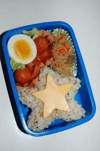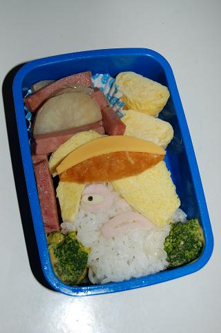 いよいよクリスマスですね~!そして年明けまでもうほぼ1週間です。と言うわけで今週はクリスマスをテーマにお弁当作ってました。でも先週のお弁当をまだUPしていない事に気が付いた!先週のは2つだけなので一気に行っちゃいます。ワンニャン弁当再びもうほとんど定番の域に入っている『ワンニャン弁当』です。でも簡単・カワイイ、私は好きなの。今回は手作り鮭フレークおにぎりです。ピアノ弁当ちょっと女の子っぽいかなーとは思ったんだけど音楽好きな息子なので(と言っても特に何も習ったりはしてません)作ってみました。ピアニストmiffyちゃん、こんなのいかが?***ここからがクリスマス週間でーす!***サンタ弁当サンタクロースです。ちょっと髭のはじっこ切れてますけど。相変わらず彩りは良くないです。だって食べないんだもん・・・。ルドルフ弁当一応トナカイのつもり。だってトナカイなんてどんな顔してるか良く分からない。映画『RUDOLPH』のトナカイ君にしてあげれば良かったと気付いたのはお弁当を持たせた後でした。ツリー弁当リースにしようかツリーにしようか悩んで結局ツリーにしました。やっぱ馴染み深いのはツリーよね。飾りにも星を入れたかったんだけど寝坊して時間が無かったため全部丸に。明日(もう0時だから今日か)から長男冬休みのため今年のお弁当はこれで終了!しばらくお休みだと思うと嬉しくって仕方ないです。寂しくはないです、全然。お休みの間にネタを考え貯めておかなくっちゃ~!今年のお弁当は終了だけど日記の方はぼちぼち更新していくつもり(つもり)です。それでは皆さんメリークリスマス!!!最近ちょっと痩せて腹筋が浮いてきたので鏡の前でハラに力を入れてはニヤニヤしている私です。(ナル男か?)ジョシュ弁当これはねー、NICKでやってる『MR.MEATY』というクレイアニメなんですけど、初め観た時はカートゥーンネットワークの“ADULT SWIM”とかMTV系の大人向けアニメと勘違いした位可愛くないのー!でも息子は好きでいつも観てるので作ってみました。反応は、いまいちでした・・・。星のサンドイッチ面倒臭かったんです、考えるのが。サンドイッチの日はかなり作れるキャラが限られるので大変。次のサンドイッチは・・・どうしよ~!スノーマン弁当冬ですのでね。これは作っておかないと。何だかすでにクリスマス気分満載のお弁当だけどクリスマス弁当習慣は来週の予定です。ハロウィンの時みたいに1週間ずっとクリスマス尽くし。何作ろうかな~??ステイツに来て初めてのホリデーシーズン、ご近所のライトアップなんかはどこもキレイで楽しいけれど子供のプレゼントやらなにやらお財布の方はピーピーです~。こんなんで本当に来年の里帰りが果たせるのだろうかと今からちょっと不安・・・。凹凹期間から復活しました!今日は元気です!早速行きます。スクイッドワード弁当スポンジボブに出て来る意地悪だけどちょっと憎めないおじさん(?)です。スポンジボブキャラもこれで5人目、次は誰にしようかな~?スター弁当見たら分かると思いますが手抜きです。と言うか何も思いつかなくて・・・。黄色いご飯はカレー粉とシーズニングソルトです。星条旗弁当星3つしかないけど・・・。日本の国旗も並べて日米友好弁当にしようかとも思ったんだけど、何だか風刺っぽくなりそうなのでやめました。そんな社会派じゃないし。っつーか日本の国旗って・・・『日の丸弁当』じゃ~ん!うちの長男は朝が弱く朝ごはんをなかなか食べてくれません。小さい頃からちゃんと朝・昼・晩と1日3食食べさせてきているのになぜだろう?起き抜けは食欲が無いだろうと思ってちょっと早めに起こしてジュースを飲ませて支度をさせながら時間をおいているんだけどダメです。調子の悪いときは吐いたりします。何かいい方法ありませんかね?お弁当TOPページへ