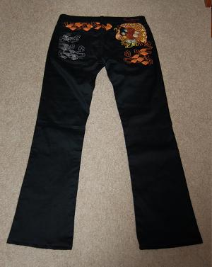 先週買ったPepe Jeansのパンツです。一目惚れ。こういうゴッツイ刺繍とかも結構好きなのです。刺繍部分のアップ。かっけー。パンツ以外は極シンプルにまとめて着るつもりです。でもね、実はこれ買う時にちょっとユルいかちょっとキツイかしかなくて、でもどーうしても欲しかったのでちょっとキツイのを買っちゃったんです・・・。幅はキツイのに丈は長い。悲しい・・・。あのですね、今週金曜日に旦那の友達に子供を見てもらって、久々にちょこっとデートする事になってるんですよ。あ、もちろん旦那とね。(笑)それで旦那にこのパンツを見せたところえらく気に入ってしまって「金曜日はこれ履いて、お願い。」と頼まれてしまった。そんな訳で今、カラダ絞り中です。って、もう日にち無いじゃん!スソ上げだけは完了したんですけどねー。私の体もミシンでタタタっと詰められればいいのに・・・。