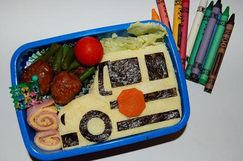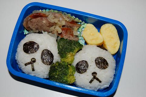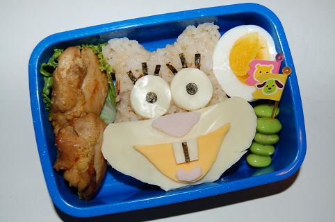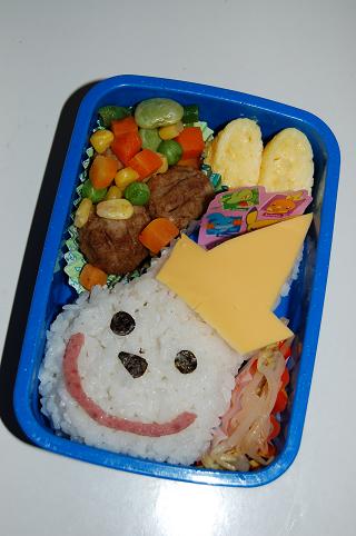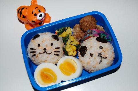 最近PCでちょこちょこやっている事があって寝不足気味です。お弁当の為の早起きがツライ!スクールバス弁当たまにこういう“キャラじゃない物”を作るのが楽しいです。たぶん前にも書いたけど、「似せなきゃ!」って言うストレスが無いのがいいのかも。ちなみにこのトマトは庭の“畑”で取れたプチトマトです!プランクトン弁当これ分かります?スポンジボブに出て来るちっさいオッサン(かどうかは知らないけど)。息子は大好きなのですごく喜んでました。ワンニャンおにぎり前にも1度作った事のあるワンニャンおにぎり。この日は寝坊してしまい時間が無かったのでこれにしちゃいました。だからおかずも何だかやる気無い感じです。でもやっぱりキャラじゃない物作るのは楽しい。*番外編*アンパンマンおにぎりお兄ちゃんに『プランクトン弁当』を作った日、次男を連れてお友達と公園に行きました。お友達の息子ちゃんはアンパンマンが大好きなのでうちの次男とひとつずつ。この日の朝はキャラ弁三昧でしたわ。今まで色々なお弁当を作ってきたのにアンパンマン作ったのはこれが初めて!自分でも意外。ここのとこネタ詰まり気味でお弁当作りがやや苦痛。初めに書いたけど寝不足で朝が辛いし・・・。じゃあキャラ弁なんかやらなきゃいいんだけど、ここまで来ると今更普通のお弁当作るのも嫌なのよね。やりだすと止まらないっていうこの我ながらニクイ性格・・・。