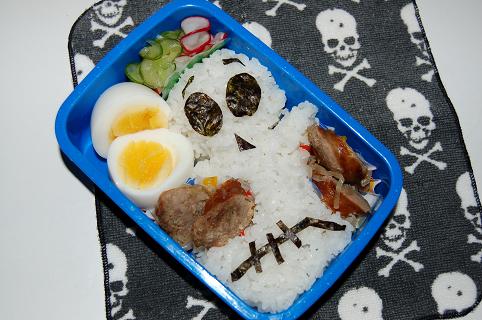 こんばんわー!最近はお友達と遊んだり(子連れで公園、とかね)、学校行ったり、宿題やったり、夫婦喧嘩したり、腹いせに買い物したり、何だか充実(?)した生活をしておるPecanです。コーク缶弁当微妙だわ・・・。すっごく大変だったのに・・・。すっごく大変だった割には息子にも「見えない。」と言われた悲しい一品です。ピカチューサンド前日のコカコーラが「見えない」と言われて頭に来たので、じゃあ今日は嫌でも見えるやつを作ってやるっ!って作ったのがこれです。お弁当の内容がテキトーなのは見えなかった事にしてやってください・・・。今何時?おにぎり前によそ様のネタを真似したペン技、第2弾です。この時計を描くってのもその方がやってました。手作り鮭フレークが悪くならないうちに使ってしまいたくて、でも鮭フレークなキャラが思い付かなかったのでこんな事になっちゃいました。もうすぐハロウィンですね~!キャンディーを貰えない大人達まで何だかウキウキしちゃうのは何ででしょうね。来週は『ハロウィン弁当WEEK』でいこうと今から企んでます!