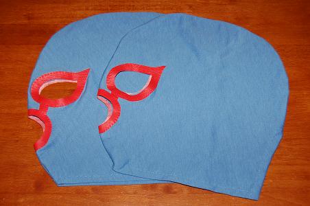 だーいぶ前の日記で『NACHO LIBRE』のマスク作ります!と宣言していましたが、(日記「四の字固め!」参照)やっと出来ましたー!大変だったー!いや、かかった時間は実質3・4日なんですけど、途中で面倒臭くなっちゃって放置してた期間が長かったもんで。型紙も何も無いとこからなのでどうしたもんかと考えながら、途中細かい作業にイライラしながら頑張りました。なのになんと長男の奴、ものを見たら軽く照れが入ってしまったらしく「ぼくやっぱりいいや。」とか何とか言って被りたがらない。それを見た次男もさっきまであんなにノリノリだったくせに、急にお兄ちゃんの真似をして嫌がりだした。コラー!ママがどんなに頑張ったと思ってる!頭にきたので「じゃあちゃんと遊んでくれるよその子にあげちゃう」と言ったらいきなり「ダメー!あそぶー!ほしいー!」だと。(今更遅いわい!)と思ったけど「そういう、人の気持ちを踏みにじる様な事はしてはいけない」と言い聞かせ(もっと分かり易く伝えましたが)、無事に2人の元へ。これが本家のNACHO LIBRE。そしてこれがうちのNACHO兄弟。イヤ、ホント作るの大変でした。二度とやりたくないです。