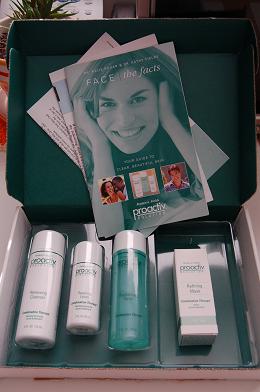 バージニアに住み始めて8ヶ月、とても困っている事があります。それは、水が肌に合わないこと。もともとアブラ性で常にどこかしらに吹き出物があるような体質なんだけれども、ここへ来てからというものその数が半端じゃない。時には痛くて顔を洗うのがツライほど。それから1番ショックだったのは、それまで出来た事が無かった背中にまで吹き出物がブツブツと。それも1個2個じゃないの。背中じゅうにブァーって。だから「これは何とかしなくては!」って浄水機能付きのシャワーヘッドでも探してみようかな、と思っていたら最近だいぶ涼しくなったせいか背中の方はかなり良くなってきました。でも顔。顔の方は相変わらずなんです。で、とうとうこれを買ってみた。Proactivお試し3点+ボーナスセット!これCMで観て気になってた人も多いんじゃない?セレブを使ったあのCM、ちなみにこっちではジェシカシンプソンやリンジーローハンが出てますが。今日から使い始めました。まず、ボーナスのアクネクリームみたいなのを吹き出物に塗り待つ事10分。そしてぬるま湯で洗い流したら次は洗顔。洗顔はね、中にスクラブみたいな、でももっともっと細かい超微粒子が入っていて“優しくマッサージして下さい”と書いてある。ちょっとこすり過ぎるとピリピリするんだけどさすがに流した後はすごくスッキリ、お肌も何だかツルツルしたみたい。洗いながら「何か懐かしい匂いがする」と思ったらそうだ、『ハイレモン』でした。そしてトナーをコットンに取って付ける。これはほぼ無臭。最後にローションを塗って、これで終了。このローションもやっぱり匂いは『ハイレモン』。私はさらにアイクリームなんかを塗ったりしますがこれはProactivとは関係無いので。アブラ性とは言え、最近はもう歳が歳なので局部的に乾燥したりする私、「こんなにスッキリしちゃったら時間が経つとカサカサしてくるんじゃないかな?」と思ったけれど今のところ大丈夫みたいです。しばらく続けてみようと思います。ツルツルセレブ肌になれます様に。効果の方、また追って報告します!