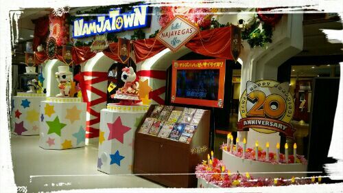 新年初ナンジャです~♪ナンジャタウンは、兄ちゃんが幼稚園の頃にオープンしたんですが、20周年なんですね。20年って、あっと言う間だった。20年の間には、タンタンも生まれ、そのタンタンは今年17才!Σ(Д゚;/)/この20年、ナンジャタウンは進化しましたが、lyri☆は老化して行くばかり!┐(-。ー;)┌今日のメインは、タンタンに届いた「もののけタマ」ちゃんからのクリスマスカード!なんか、サプライズプレゼントが有るらしい?タンタン、ワクワクしながらクリスマスカードを出すと、示されたのは「ボールビンゴゲーム」???「ボールビンゴゲーム」は、200円の有料ゲームですが、景品は駄菓子屋の玩具で、ビンゴ揃わなかったら「妖怪けむり」がザンネン賞。 20円 ようかいけむり 30付 元々そんなプレゼント確約の企画じゃなかったので、「ちょっと楽しんでってね~♪」みたいな事だったんだな~と、ちょっとガッカリ。それでもタンタン頑張って、1ビンゴ揃いました。そしたら、引き出しから幾つか缶バッジを出され、選ぶよう言われました。タンタン、中から大好きな「もののけタマ」ちゃんの缶バッジ選び、とても喜んでました。クリスマスカード到着から、テンション上がったり下がったり、結果オーライな面白い企画でした!(⌒‐⌒)