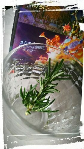 USJのクリスマスカクテル(ノンアルコール)を飾っていたローズマリー・・・カクテルを飲み干して、そのまま下げられて棄てられちゃうのが可哀相だったので、押し花(押し葉)にしようとナプキンで包んで持ち帰りました。 帰宅後にナプキンを開いたら、軽く平たくなっていたのだけど、まだまだ瑞々しかったので、乾燥した茎の先を切り落として水に浸けておいたら復活しました。 可愛いUSJからの「クリスマスのテイクアウト」・・・素敵なスーベニアでしょう?(*^▽^)/★*☆♪ しばらく楽しんでから、料理のスパイスに使うか、押し花にして栞を作るかしようと思います。