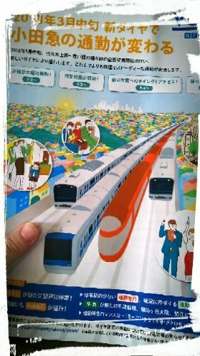 今日の朝刊に「ODAKYU VOICE 2018年3月中旬 新ダイヤで小田急の通勤が変わる」と云う広告が入っていました。 この件は、Lyri☆が非常に気になっていた事なので、広報活動に納得しました。 実際のダイヤを含む新ダイヤは、駅ごとに違う為、膨大ですから「必要な駅」は各自で検索したりして調べなければならないですね。 その中で注目すべきは、新百合ヶ丘駅から下北沢駅までノンストップだった快速急行が、登戸駅に停車する事になった事です。 Lyri☆個人としては、少しでも早く下北沢駅(実家)や代々木上原駅(地下鉄乗継)や新宿駅(都心に出る際)に行きたい時に快速急行は便利でしたが、案外使う乗継の登戸駅を通過してしまう為、不便なだけでなく、慌ててる時に間違えて快速急行に乗ってしまった時の情けなさったら・・・「あぁ~多摩川超えちゃったよ~!(;つД`)」から開放されると云うのは感激です! 「快速急行が終日登戸に停車」と書かれているのは素晴らしいですが、Lyri☆の最寄り駅は通勤時間帯以外には相変わらず各駅停車しか止まらない。 通勤時間帯だけ、準急が停まるのですが・・・準急って言っても、伊勢原駅から登戸駅まで各駅に停車するので、(少なくともLyri☆には)ただの各駅停車でしかなく、「急行に準ずる」パッセしないから「急」の文字は全然意味無し! 結果、最寄り駅はただの各駅停車駅と云う事に変わり無く、新ダイヤで通勤時間帯の開かずの踏切化や、短時間で開閉を繰り返し取り残されたお年寄りの事故が心配される事態には何ら変わらない感じ? 寂れた駅だけど、なんとか早く中央改札化にして、入場券無しで線路の反対側まで行来出来るようにして欲しいものです。