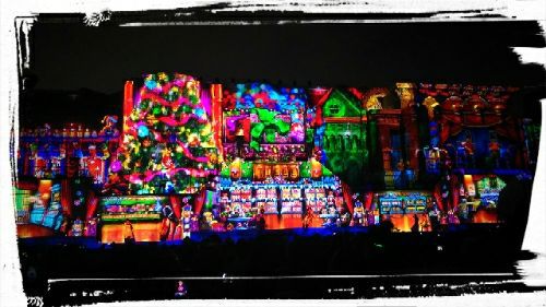関東では、TVの情報番組で毎年チラ見していましたが・・・目の前で見ると、予想していたより大掛かりで、なんかとっても「広大」です。 開始30分前を切ってから鑑賞エリアに向かうのだと、開場前からすでに行列に待機していた人達がどんどん座って行くので、有料エリアであってもほぼほぼ満席状態です。 全体が見渡せる位置、中央より若干後ろ辺りを中心に、後ろ・左右・前、さらに後ろ・左右・前へと波紋が拡がるように埋まって行き、後ろが詰まって来て前が埋まって行くので、直前になると見上げるようにして鑑賞する前方列辺りしか空きが無くなってしまいます。 そうなると、仕方無く前列辺りの空いた辺りを目指すしか無いのですが、通路が無いので、満席の人の海を「スミマセン!(;´ω`)」を連呼しつつレジャーシートの隙間を縫って進まなきゃならないから、相当大変そうです。 有料エリアは、入場時にチケットチェックして入れて行くので、開場時にスムースに入れる為に行列させられます。 Lyri☆は慣れてない為、何処に並べば良いかわからず、待機列と反対側のスパイダーマン方面から来てしまい、中央が通過出来ないので、薄暗くて先がどうなってるのかヨクワカンナイ狭い通路を「ただ通過する人」と「入場の待機列を探して来た人」が入り雑じってグルリと回らなくてはならなくなり大変でした。 結局ステージを挟んで、スパイダーマン側ではなく、スタジオ・スターズ・レストラン側が入口だったのですが、Lyri☆が辿り着いたのはすでに開場後でしたから最後尾が何処にどう伸びていたのかは知りません。 明るいうちに、クルーに何処に並ぶのかを確認しておくと良いと思います。 有料エリアを囲うように左右に有る指定された有料エリア寄りの無料エリアは、昼間から場所取りで埋まっていて、明るいうちは防寒ブランケットより、帽子や日焼け止めが必要なんじゃないかと思いました。ヤフーチケットの先行販売で、有料エリアのチケット買っておいて良かったです。 初めてナマで観ましたが、素晴らしいショーで、これが無料と云うのは凄い!ショーだけの為に、朝から場所取りするようなスケジュールが取れない場合には、有料エリアのチケットが有る事が助かるし、有料エリアのチケット買う価値有りだと思いました。