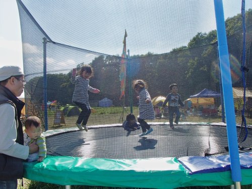 2日目もいいお天気初日は「怖い~」と大泣きだったchumさんも慣れたのか、この日はトランポリンでハッスル!チビのkanさんの方が度胸が座ってて、初日から上手に飛びまくってます。ツリーハウスには滑り台がついてて、こいつが曲者・・・小さいからといって侮るなかれ。。滑ると最後がジャンプ台となっていてkanはひゃっほ~♪と滑ってフワッと浮いてドスンと尻で着地・・・・二度とスベらなんだ・・・。。何人も同じ目にあって泣いているのを目撃しました^^;ツリーハウスからの眺め。。。額縁の絵みたいでしょ^^午後はmijincoのワークショップに初参加こいっちさんがすご~く大きい(長い?)紙芝居も読んでくれて子供たちも大喜び何よりハマったのが茜さんのヘンプ編みのワークショップ茜糸!大人もハマるが子供もハマる!教えてもらいながら、5歳児でも編めました。。。。ママ作 かわゆいだろ。。お世話になった2人とパシャ!(お顔出してもよかったかしら?)そしてこいっちさんにパンダを書いてもらいパシャ!(光で飛んじゃって見えない汗)長居してしまいごめんなさい。楽しい時間をありがとうございました楽しいキャンプだっただ~。。。来年もフィールアース開催されるかな~不穏な噂が流れてるので心配・・・