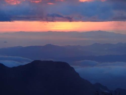 ゴールデンウィークの5月3・4日に子供たちを実家に預け雲取山に行ってまいりました。去年、鳴沢からのコースで登ったので、今年は三峰神社からのコースにしました。。登り口手前にある萱ぶき屋根の家と満開のシャクナゲ6時登山開始ちょっとした鎖場があったりこういう登山道好き~^^前白岩到着!ここから先の道のりがまだまだ長いよ~~~白岩小屋で昼食。。見晴らし最高!コバイケイソウかな。。咲いてるところが見たかったわ~途中シカに遭遇!!しばらくこっちをみて「キュイーキュイー」と話しかけられましたがこいつシカじゃない!?と思ったのかどうかは定かではないですが、逃げて行きました^^;登っては下りを繰り返し、「あんなに頑張って登ったのにまた下るの~~~もったいないよ~~~(泣)」とわたくしブーたれまくり・・・山荘が近くなるにつれて残雪が。。。でも軽アイゼンが活躍するほどではなかったです。。雲取山荘到着~~~~。。コースタイムを大幅にオーバーして13時に到着。。。本当はこの先の奥多摩小屋が宿泊予定地だったのですが、私の鈍足ぶりにあきれたtomoさんが「ここをキャンプ地とする!」と宣言。しかしすでにテントがいっぱい!しかも雪がまだ残っていて張れる場所も少なく・・・場所を探してようやく無難なところに落ち着きましたさ。。後に聞いた話、奥多摩小屋の方がテント数200張り近くと大変混雑しておりしかも、夜中の強風で飛ばされたテントがいくつかあったとか・・・・私の鈍足万歳。一休みして身軽になったところで雲取頂上へ。。帰ってきてみるとさらにテントが増えて、こんなに斜面にまでテントが・・・夜は風の音がビュービューとすごかったですが、テント自体は大して揺れることもなく爆睡。。翌朝。。トイレに行くと山荘の前に人だかりが。。みんなが待っていたのは~~~~日の出!!寝坊すけの私がめったに見ることの出来ない貴重な日の出ざんした。。あとは来た道を戻るだけ~。。でも昨日と同じ数登って下りて・・・・・かわいい花に癒されて木々の間の富士山に癒されて向こうに見える山はなんだろ~と思ってたら「浅間山だよ」と通りすがりのおじちゃんが教えてくれました。昨日はまだ開いてなかった売店が開いてる~。。無事下山^^下山してビックリ。。ゴールデンウィークまっただ中だからか、三峰神社は観光客でいっぱい。。。駐車場も入りきれずに大渋滞してました。。快晴でよかったね。。。