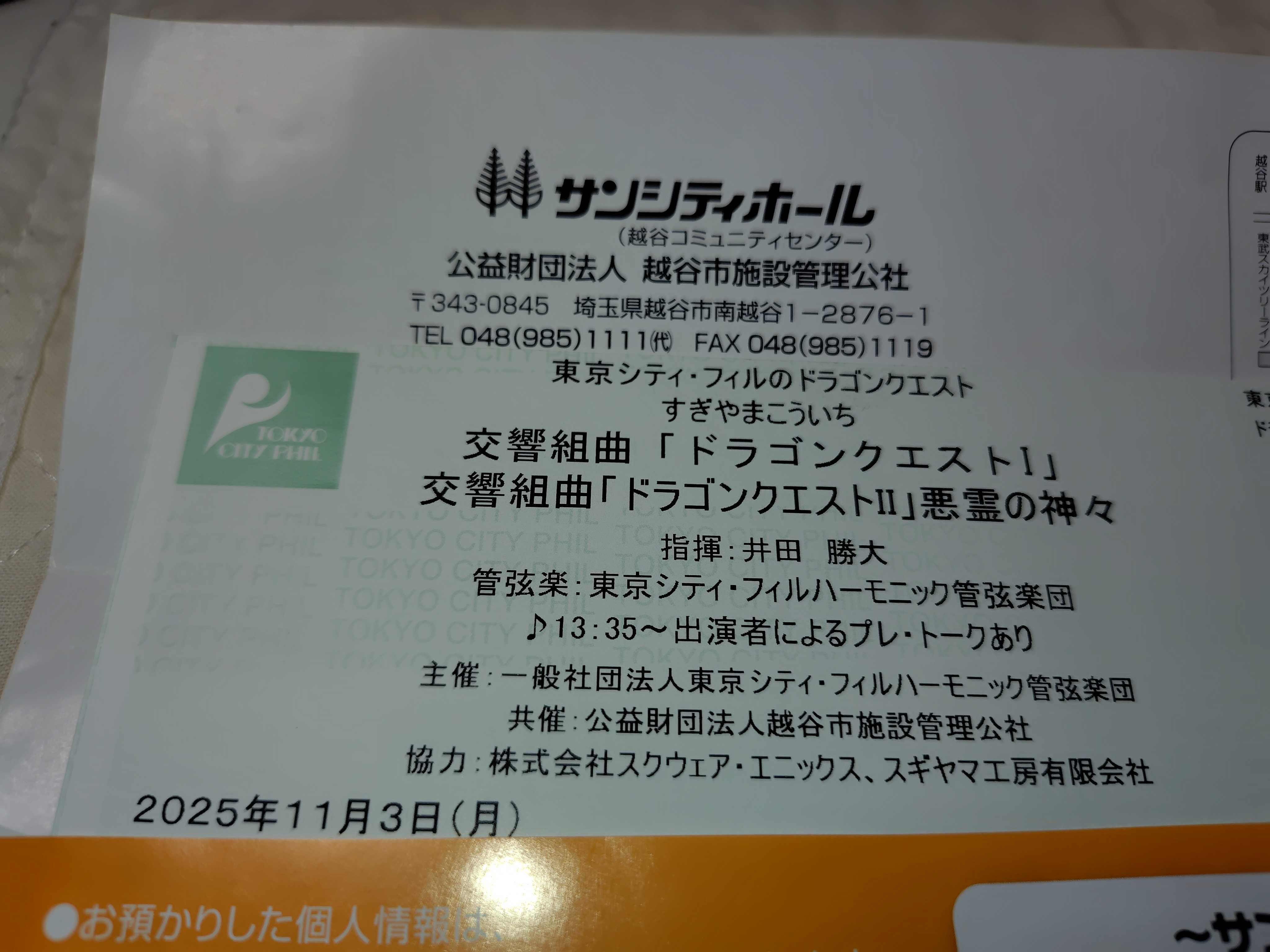 ―東京シティ・フィルのドラゴンクエストーに行ってきました。