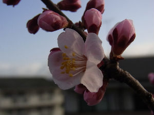 17日に我が家の杏の花が一つ咲きました。 今日は、暖かい気候のおかげで満開になりました。 春ですね♪