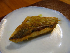 今夜はスズキのムニエル カレー風味のムニエルが食べたくなりました。まずはスズキのムニエルを仕上げて その上にカボチャ、人参、エノキ、さつまいもの バターソテーを トッピング カボチャとさつまいもの甘さが カレー味を引き立てて おいしかったです。